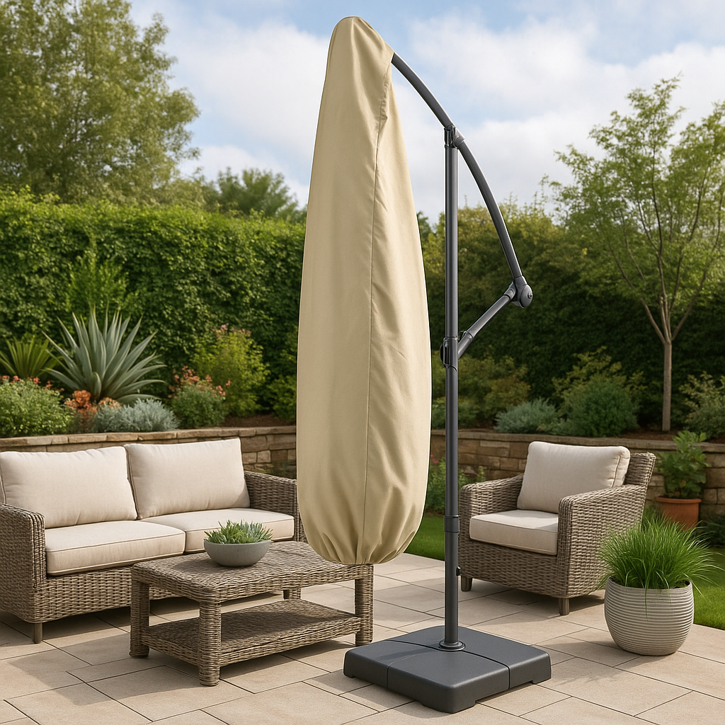 Curved protection cover designed specifically for banana-style patio umbrellas, made from 600D nylon fabric with excellent waterproof and stain-resistant performance. Perfectly fits curved structures, providing comprehensive protection for your patio umbrella.