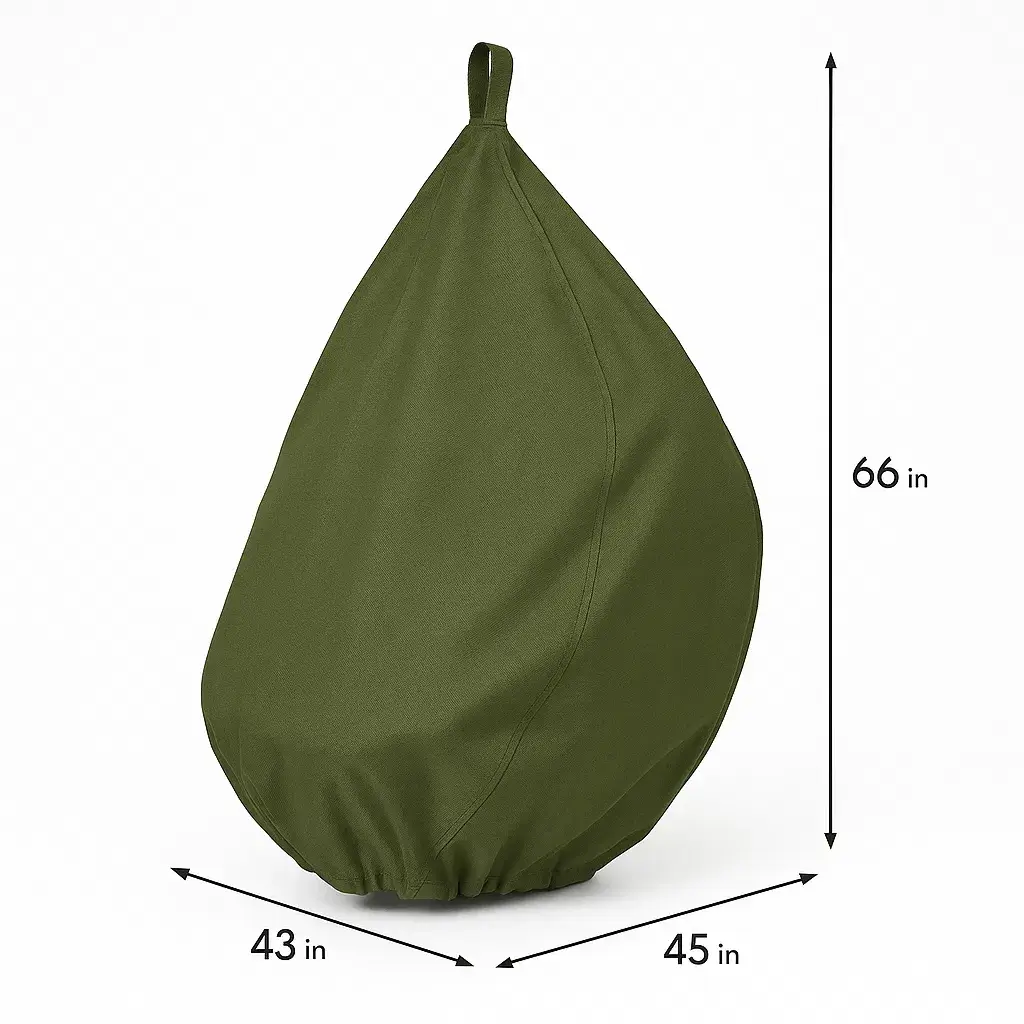 This hanging chair cover is designed for modern leisure living, perfectly protecting various swing chairs and suspended seats. The 600D nylon suspension fabric undergoes special treatment with 4500mm waterproof rating, effectively resisting rain and UV rays. The specialized fixing system ensures the cover remains stable and reliable in suspended state, while lightweight design does not affect the chair's swinging performance. The 43×45×66 inch dimensions fit most hanging chairs, and three vibrant colors add fashionable flair to outdoor spaces.