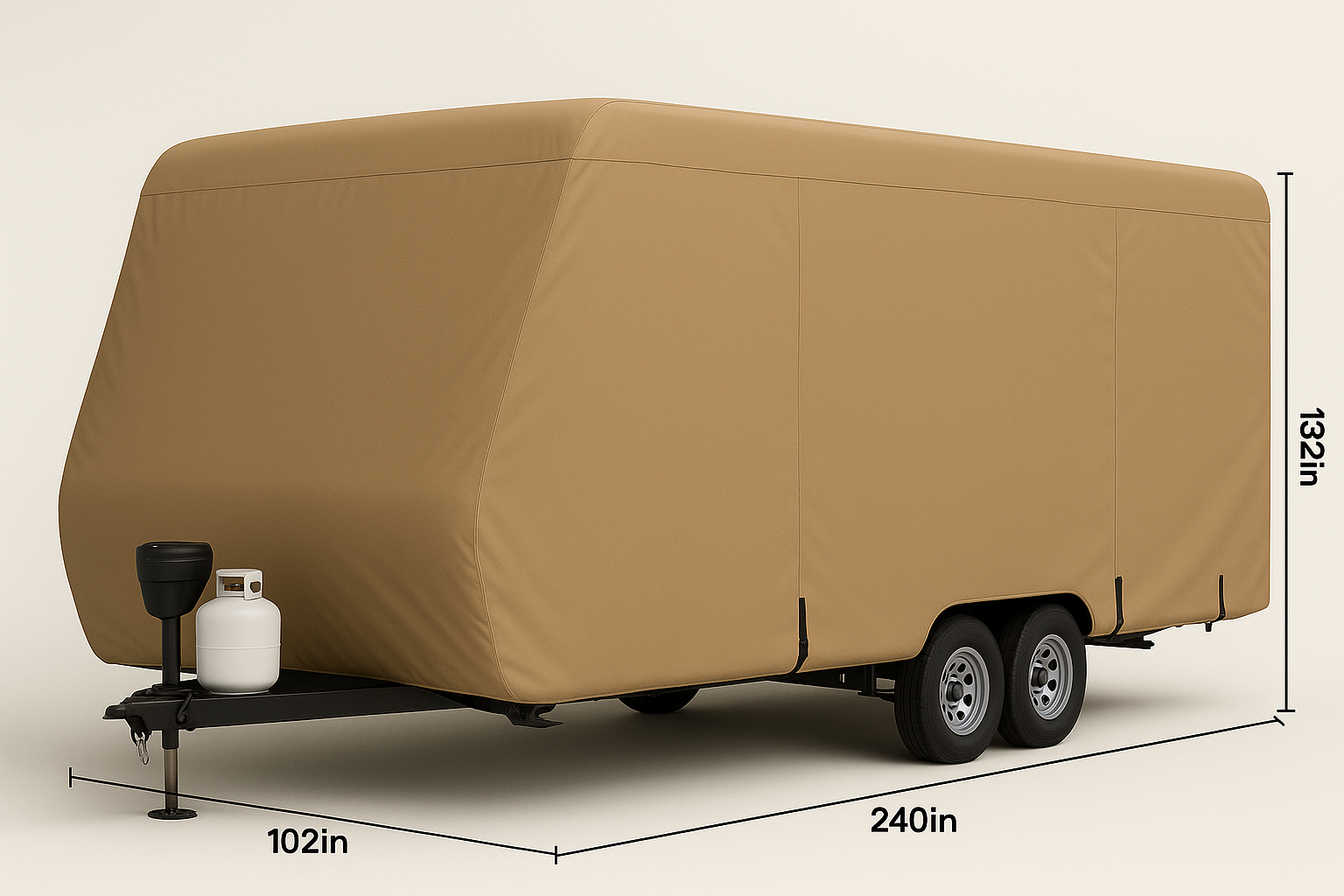 Luxury protection cover designed specifically for travel trailers, featuring 300D high-strength nylon material that provides comprehensive protection for RV living. Smart waterproof coating technology adapts to climate changes across regions, while nano stain-resistant treatment maintains clean and beautiful vehicle appearance. Ergonomic design fully considers trailer's large size characteristics, including precise adaptation of doors, windows, and vents. UPF30+ sun protection index protects vehicle materials and interior from UV damage, while breathable fabric design maintains interior air circulation. RV tie-down system ensures stability during long-term parking, with quick installation system convenient for campsite operation. Lightweight material is optimized relative to vehicle size, while large size coverage provides comprehensive protection. Eco-friendly material manufacturing reflects RV living's environmental philosophy, with simple maintenance characteristics adapting to travel lifestyle rhythm. Weather-resistant performance optimization ensures reliable use in various environments.