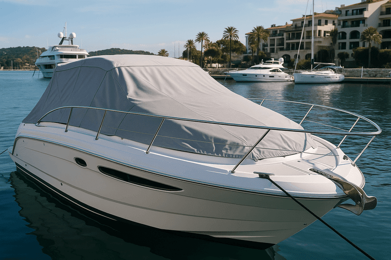 Luxury yacht cover engineered from premium 600D nylon fabric featuring advanced waterproof and stain-resistant technology. Provides complete protection for high-end yachts and luxury vessels.
