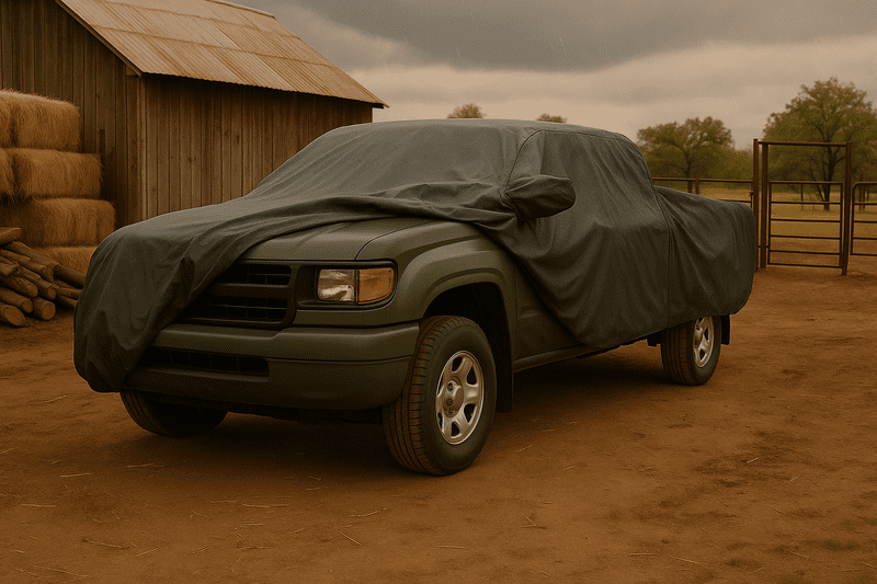 Commercial-grade truck protection cover using heavy-duty 300D nylon fabric, providing professional-level protection for trucks. Super-strong waterproof coating adapts to the high-intensity usage environment of commercial vehicles, while stain-resistant treatment ensures cleanliness under various working conditions. Specially designed for trucks' large size and high body characteristics, including comprehensive coverage of both cab and cargo bed. Enhanced UV protection preserves vehicle body from long-term sun damage, and breathable fabric prevents interior moisture and corrosion. Heavy-duty tie-down system and multi-point securing design ensure reliability and durability under harsh weather and long-term usage.