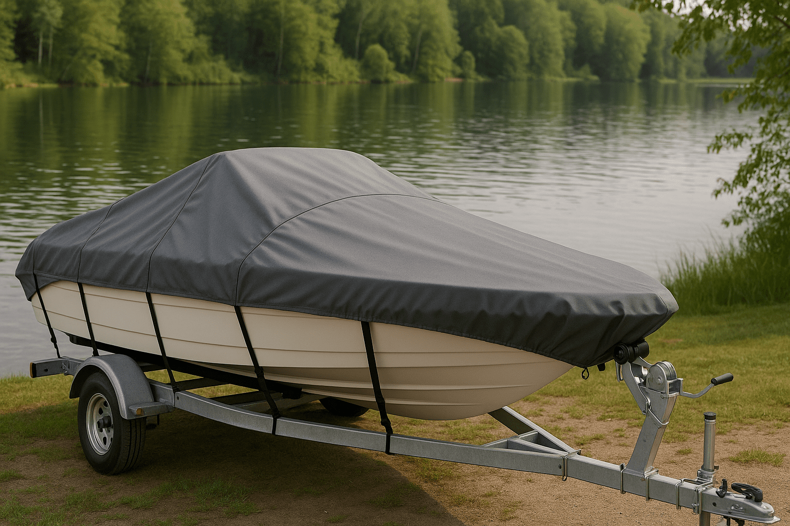 Universal heavy-duty boat cover manufactured from premium 600D nylon fabric with advanced waterproof and stain-resistant technology. Designed for comprehensive boat protection in all weather conditions.